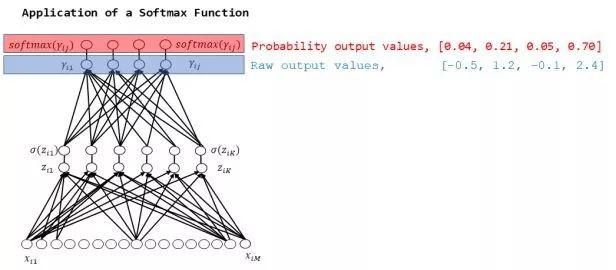 原始输出值为[-0.5,1.2,-0.1,2.4],则$z_1$ = -0.5,$z_2$ = 1.2,$z_3$ = -0.1,$z_4$ = 2.4。