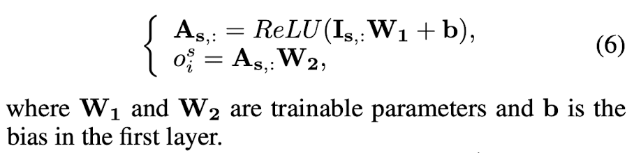 该层的设计目的是将每个类的交互特性聚合到一个 logits 中,表示类与输入文本之间的匹配分数。聚合层可以通过不同的方式实现,如 CNN 和 LSTM。但是,为了保持考试的简单性和效率,这里作者只使用了一个具有两个 FC 层的 MLP,其中 ReLU 被用作第一层的激活函数。在形式上,MLP对类的交互特性进行聚合,并计算其关联 logits 如下: